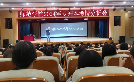 为提高同学们对专升本政策的认识,做好对未来学习和生活的规划,5月7日下午,必发集团在图书馆报告厅举办了2024年专升本考情分析会。分享会邀请博华教育副董事长王民作主讲,公司500余名2025届毕业生参加,招就科科长任鑫主持。