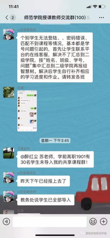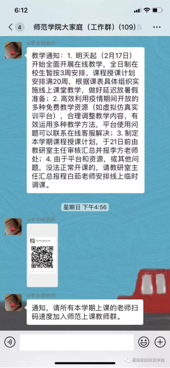 教学科科长李永明老师从2月3日开始便进入紧张的工作状态,统计全院师生数据,负责教师教学数据汇总和各线上学习平台的对接。线上教学方案制定后,他迅速建立授课教师交流群,指导协助本院教师及公共课跨院上课教师加入对应授课班级微信群或QQ群。