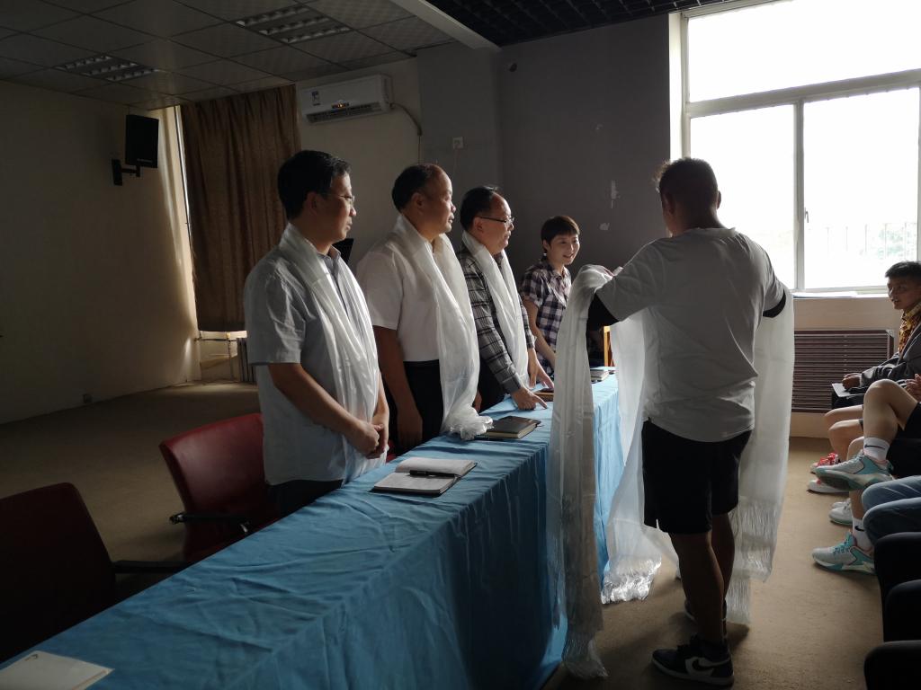 在热烈的掌声中,阿里师生向与会的公司领导、老师献上了哈达。