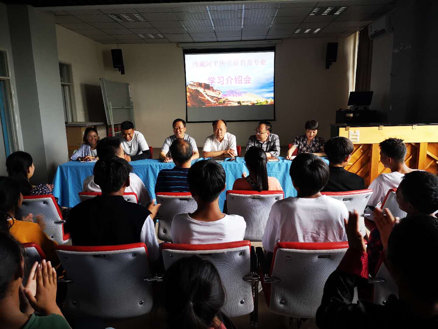 9月10日下午,必发集团西藏阿里班学前教育专业学习介绍会在师范楼二楼视听室举行。公司领导班子成员、四名援藏教师及阿里班两名带队教师和25名员工参会。会议由公司党总支副书记黄翠萍主持。