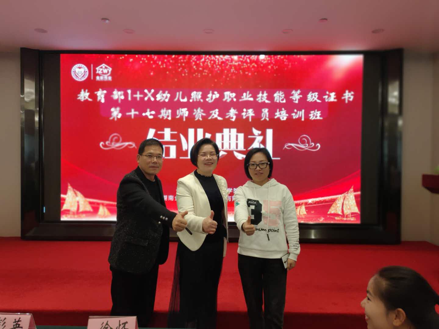 本次培训,两位教师均顺利通过了幼儿照护培训团队考核和考评员的实操考核,获得了教育部“1+X幼儿照护”团队培训证书和职业技能等级考试考评员证书。