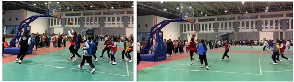 在比赛中,各班队员们很快就进入了比赛状态,她们充分发扬了顽强拼搏的体育精神,饱满的热情、昂扬的斗志、熟练地运传球、精准地投篮为她们赢来了阵阵喝彩和掌声。在决赛的阶段,赛场上每一个队员都以饱满的热情参与各团队协作,精湛的球技展现在赛场,将比赛推向高潮。在赛场外,各班同学也毫不松懈,组织啦啦队奋力为队员们呐喊助威,热烈的欢呼声此起彼伏,感染着场上的每个队员。在此次比赛中付出更多的是裁判员们,他们秉着“公平、公正、严谨”的原则认真负责的为每场比赛、每位运动员服务。