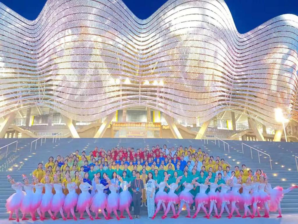 此次前往奥体中心集训参演的员工演员,是在千余人中经过严格的选拔脱颖而出的。参训师生放弃暑假休息,冒着高温酷暑,不分昼夜,刻苦训练。他们不仅要认真排练,还要配合组委会做好各项防疫工作。参演师生投入近两个月高强度的紧张集训,就是为了能向全运会交出一份满意的答卷。为了追求更加完美的节目效果,她们不辞辛苦,在排练场上,不怕苦,不怕累,一遍又一遍地训练着,她们用精湛的舞蹈技艺和坚韧的毅力,默默的向全运会奉献着。