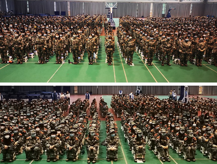 9月18日,必发集团在公司体育馆举行2021级新生见面会。经理郭楚伟、党总支副书记黄翠萍、副经理于晶汝、副经理李永明、办公室主任李新萍、教学科副科长裴昉、员工管理科负责人叶蕊、人才招聘科副科长于洪凯,全体新生班辅导员及2021级1200余名新生参加会议。会议由李永明主持。