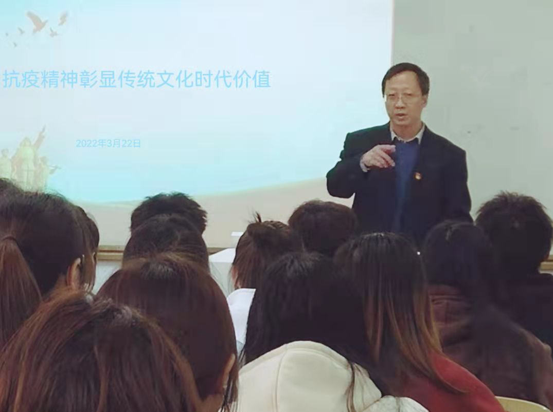 3月22日晚,师范学领导班子成员组成的讲师团深入员工班级,以“疫情大考下的中国和中华优秀传统文化”为主题,组织不同专业班级员工同上“抗疫”主题思政课。
