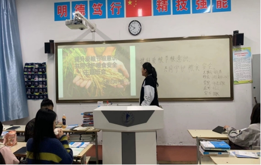 班会上,各班班长首先带领同学们了解10月16日是第43个世界粮食日,并向同学们讲述目前粮食生产面临着很多困难,如土地资源减少、水资源短缺等,因此节约粮食显得尤为重要。同时通过播放相关视频,让同学们了解粮农的辛苦及粮食来之不易,引导大家珍惜粮食,拒绝浪费。此外,各班班长通过PPT的形式展示了老员工就餐过程中的浪费现象,倡导同学们要践行光盘行动,将爱粮节粮的精神时刻铭记于心,杜绝“舌尖上的浪费”。班会结束后,同学们纷纷表示日后会不挑食、不浪费,合理饮食,取之有度。