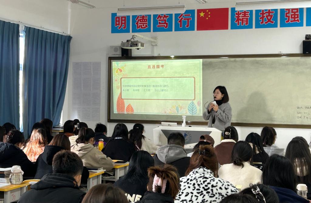 本次示范课的授课教师均为省职业院校教师教学能力大赛获奖者。张蕊老师主讲《现代汉语》,选取了“汉字的造字方法之会意”作为教学观摩内容。王钊老师主讲《幼儿园活动设计》,选取了“科学探究活动内容设计”作为教学观摩内容。活动中,张蕊老师专业知识扎实,内容丰富,教学环节层层递进,通过“从”“采”等字的演变引导同学们感受会意造字的规律。王钊老师讲解生动有趣,并在授课过程中渗透了幼儿园教团队格证考试考点,激发了同学们学习主动性与积极性。