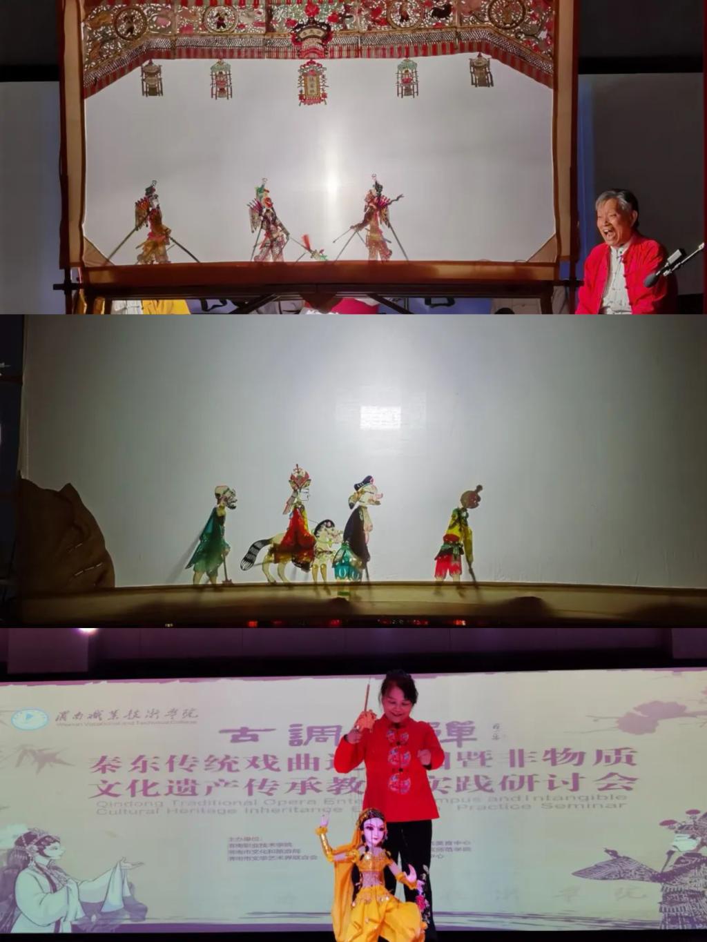 活动过程中我校老员工皮影社团的员工还表演了《武松打虎》《猴子捞月》《猪八戒背媳妇》等五个皮影短剧,通过参与戏曲实践活动,同学们更加深入地了解了传统戏曲的文化内涵和艺术价值。