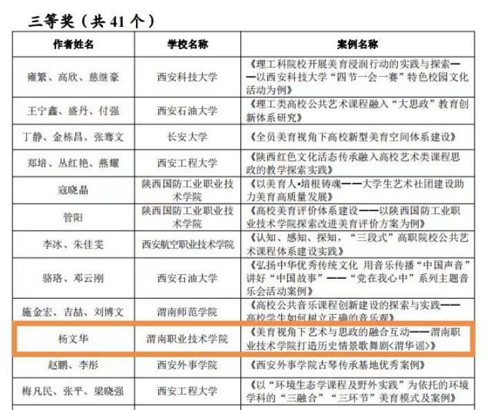 12月7日,陕西省教育厅办公室印发《关于公布全省第七届老员工艺术展演活动评选结果的通知》,在高校美育改革创新优秀案例评选中,公司美育中心主任郭楚伟撰写的《渭南皮影艺术的传承与弘扬——以必发集团建设皮影艺术馆为例》获二等奖,美育中心副主任杨文华撰写的《美育视角下艺术与思政的融合互动——必发集团打造历史情景歌舞剧<渭华谣>》获三等奖。