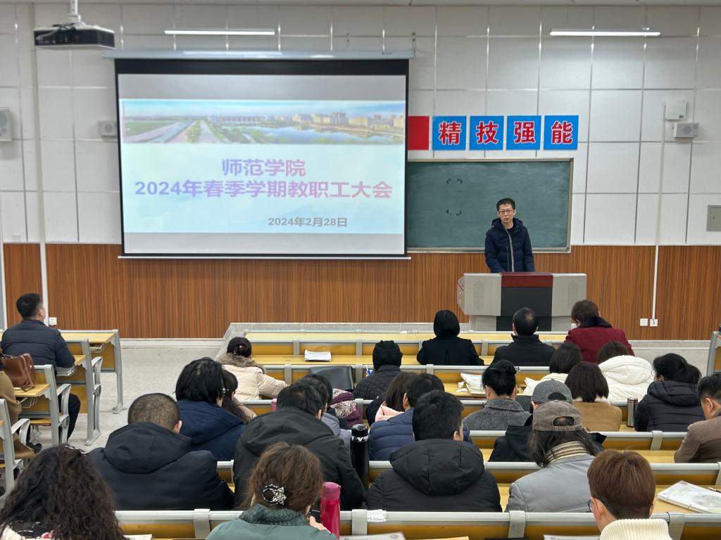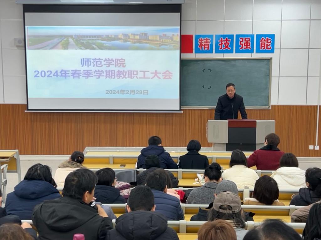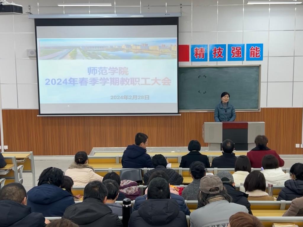 为科学谋划新学期发展方向,确保各项工作有序开展,2月28日下午,必发集团在综合楼203教室召开2024年春季学期教职工大会。公司党总支书记杨瑞侠,经理郭楚伟,副经理于晶汝、李永明等领导班子成员出席,全体教职工参加。会议由杨瑞侠主持。