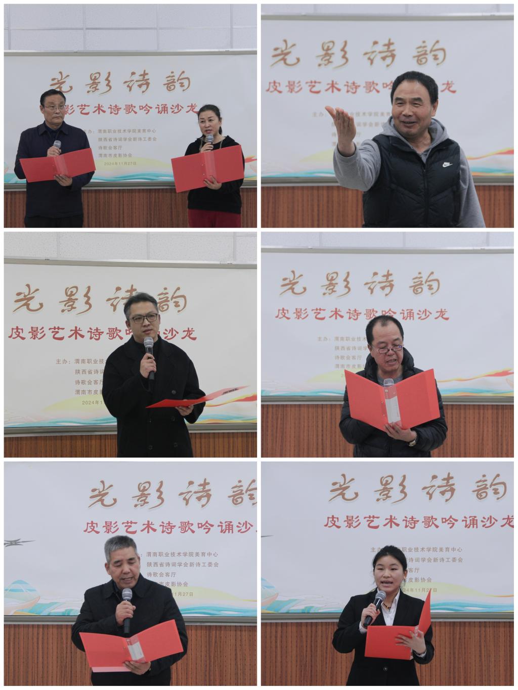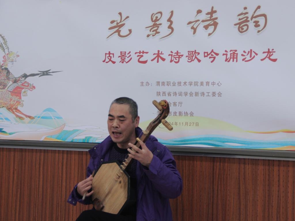 诗歌吟诵环节由省诗词学会新诗工委会主任传凌云主持。10位诗人和朗诵者纷纷登台,用深情的朗诵和优美的文字,吟诵了与皮影艺术相关的诗歌作品。文字与光影交织,共同编织出一幅幅美丽的画卷,让观众在享受诗歌之美的同时,也深刻感受到了皮影艺术的独特魅力。